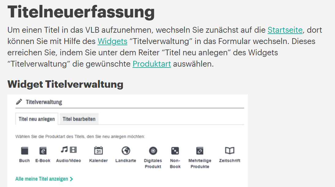 | manuelle Eingabe auf der Website | nur bei Kleinstverlagen mit sehr wenigen Titeln sinnvoll, führt aber schnell zu Fehlern oder fehlenden Informationen |