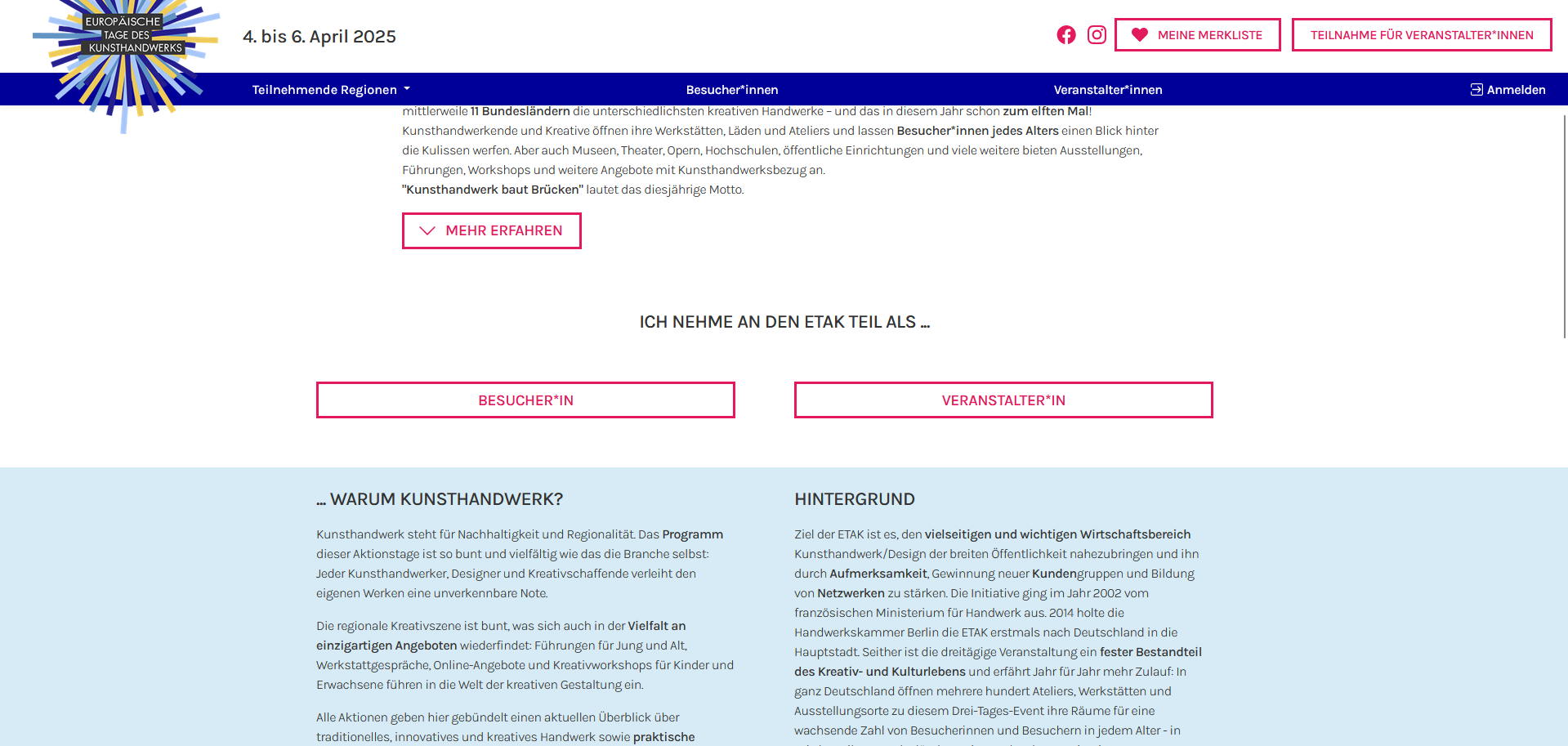 Komplette Neuentwicklung der Website der Europäischen Tage des Kunsthandwerks (ETAK) mit Drupal 10. Seitdem übernehmen wir Wartung und Hosting.