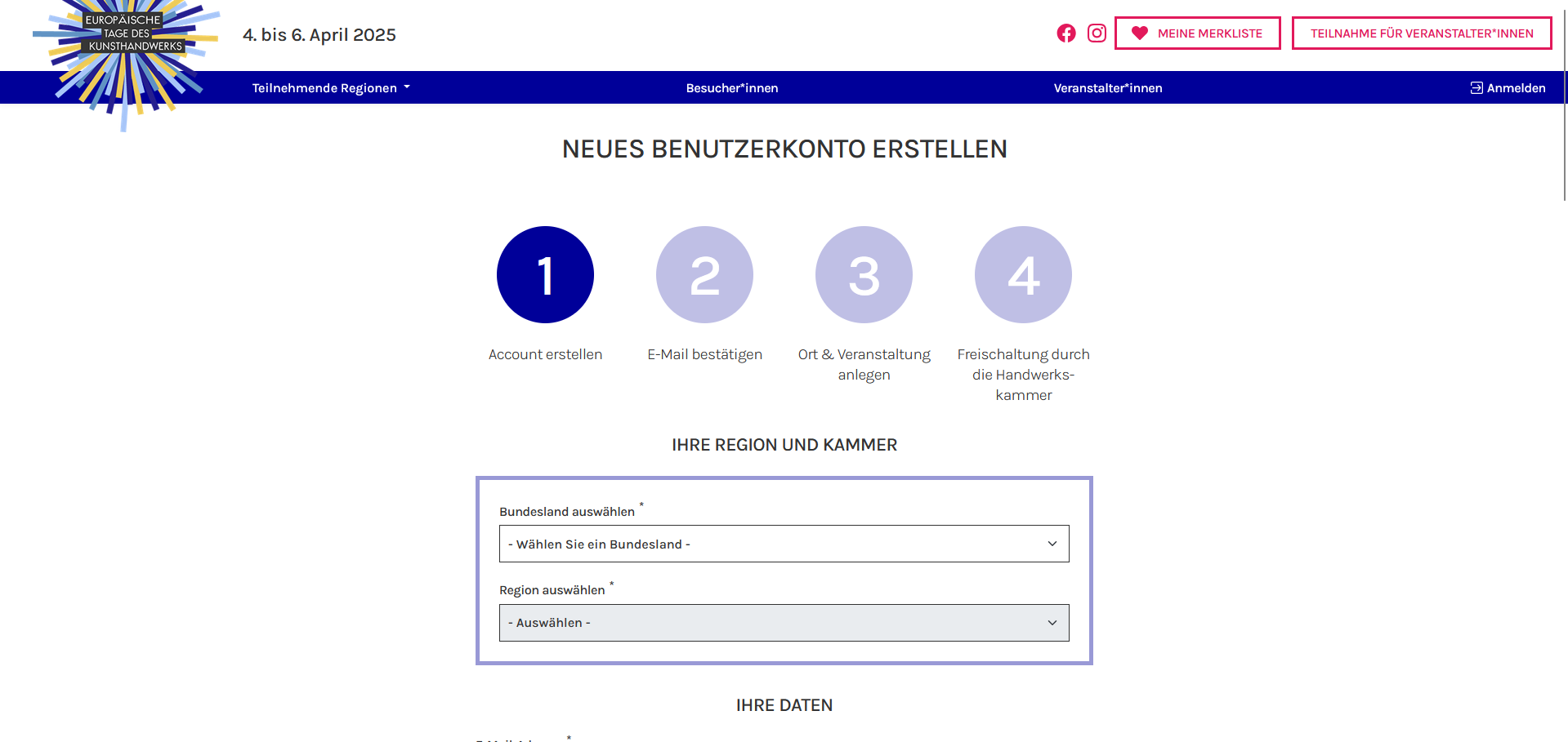 Der Relaunch der Website basiert auf Wireframes und Designentwürfen, die wir in Figma erstellt haben, um das bestehende Design der Seite um die neuen Anforderungen und Komponente zu erweitern. Dazu zählen die Filterung zwischen Besucher und Veranstalter, die Veranstaltungsübersicht, Merkliste und Anmeldung sowie die verbesserte interaktive Karte. Veranstalter aller Handwerkskammern können ohne Programmierkenntnisse Veranstaltungen erstellen und moderieren, mit Usern verknüpfen und Anmeldungen der Besucher über die Seite verwalten. Diese Anmeldungen können von Redakteuren eingesehen und zur Übersicht exportiert werden. Zudem haben wir die Suchmaschinenoptimierung und Barrierefreiheitsanalysen durchgeführt und bezüglich Datenschutz und DSGVO angepasst.