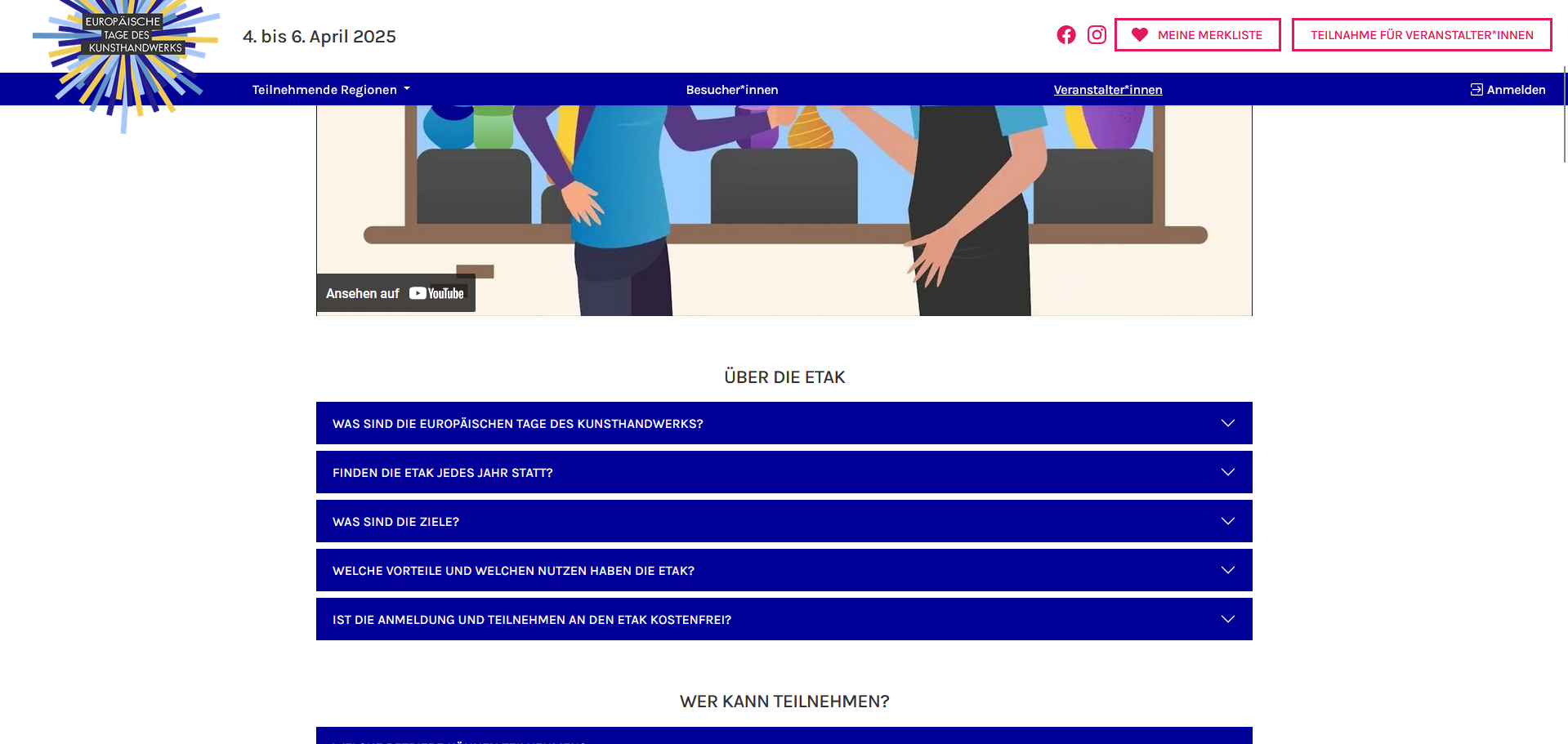 Kunsthandwerkstage.de ist eine Informationsseite für deutsche Kunsthandwerksbetriebe, die auch als Anmeldeplattform und Datenbank für die Handwerkskammer Berlin sowie 15 weitere Kammern dient. Als Anlaufstelle für interessierte Besucher und Veranstalter repräsentiert die Website die Kammern, Betriebe und jährlichen Veranstaltungen der ETAK in Deutschland.